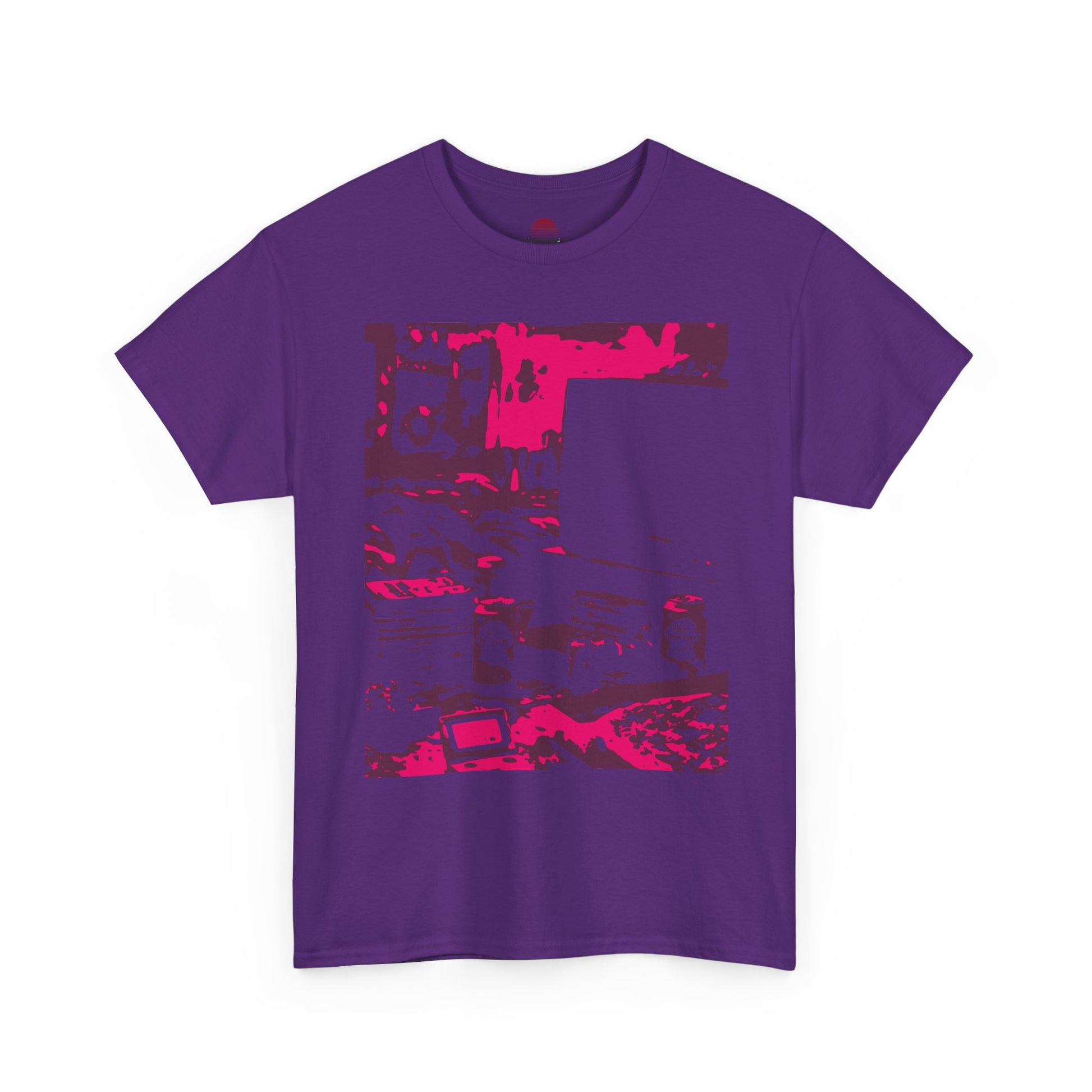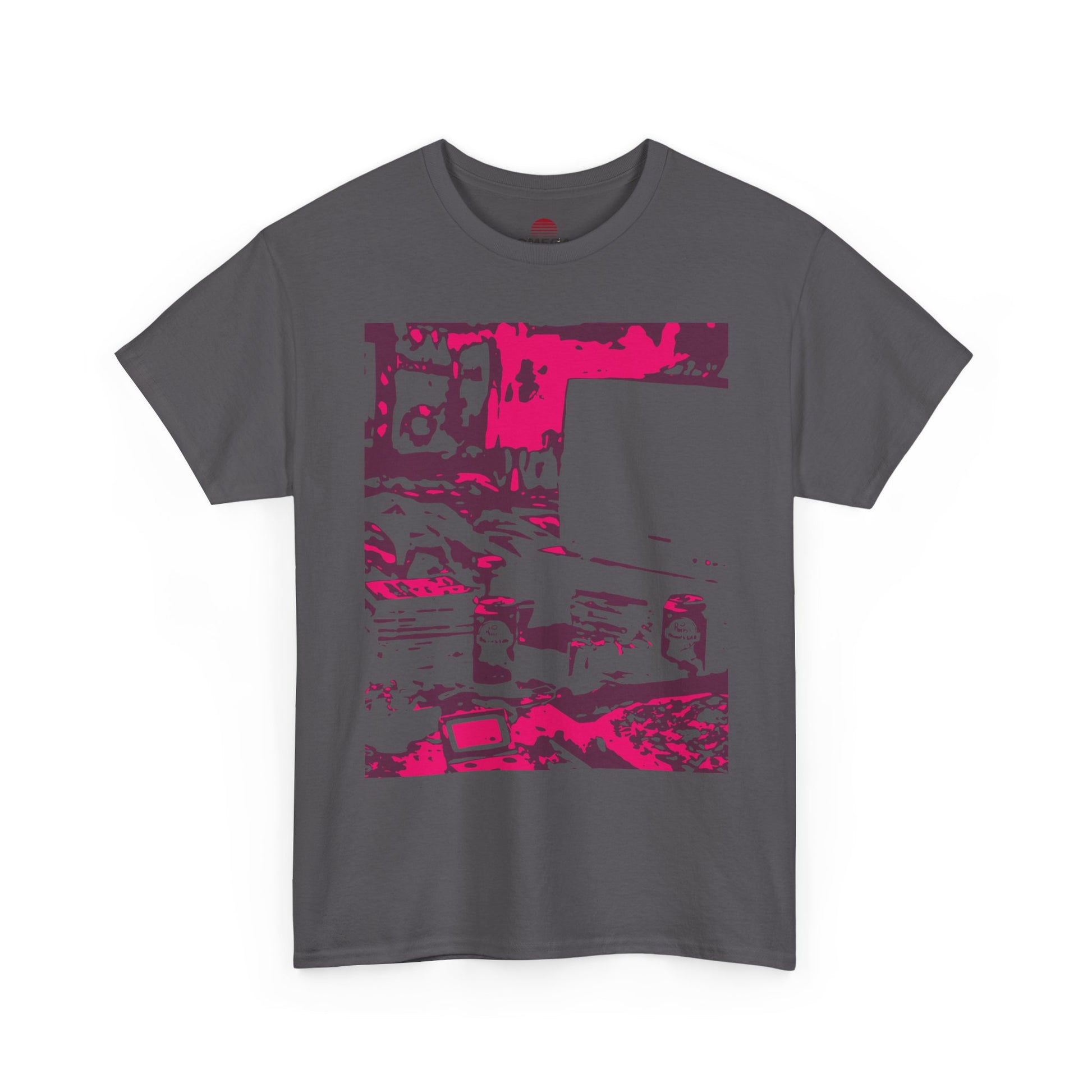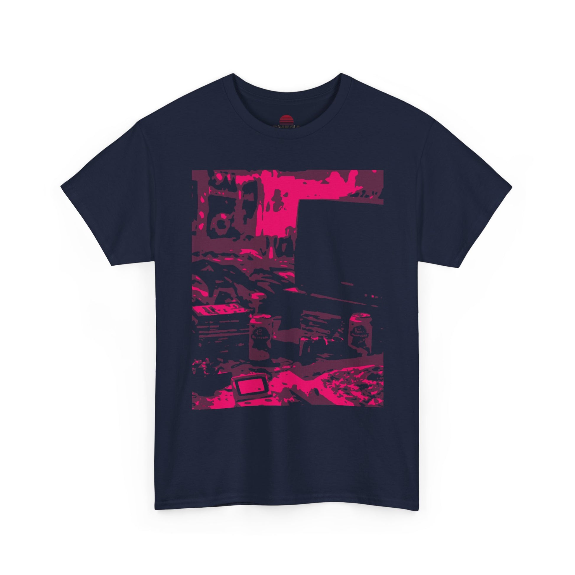 The high-contrast magenta print feels like a corrupted memory: video games left paused, empty cans on the floor, time slipping quietly through the dark. It’s nostalgic, uneasy, and strangely comforting — a tribute to the nights that shaped us and the innocence we didn’t know we were losing.